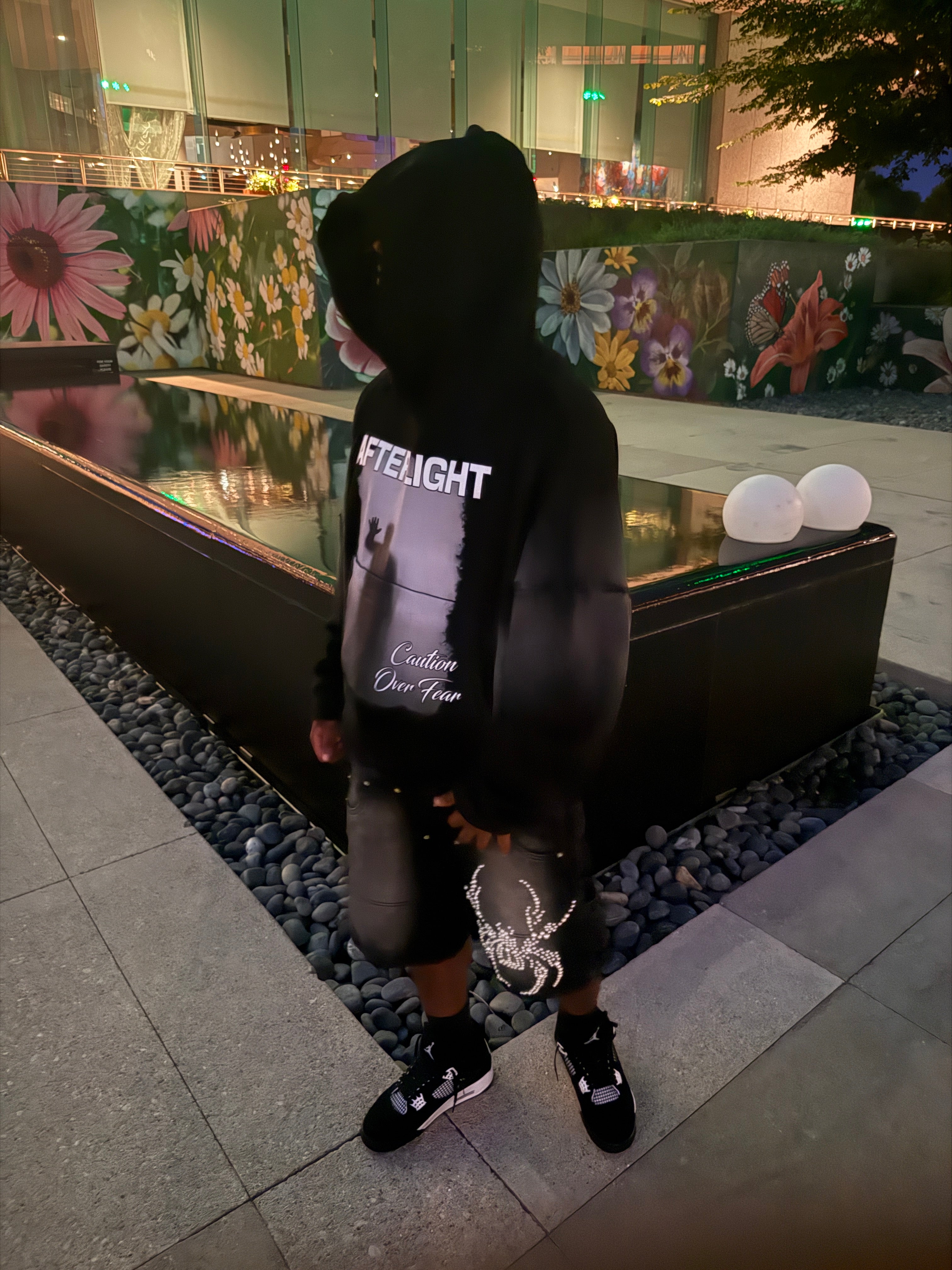The Caution Over Fear Hoodie is built to make a statement, without saying a word. Crafted from premium heavyweight fleece, it features a bold, smoke washed Afterlight graphic and clean “Caution Over Fear” detailing that turns doubt into presence. Finished with a structured, everyday fit that carries confidence effortlessly.